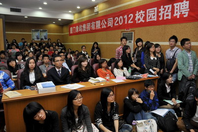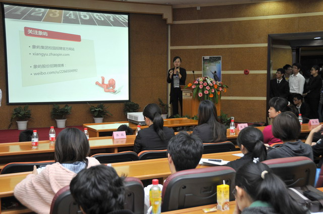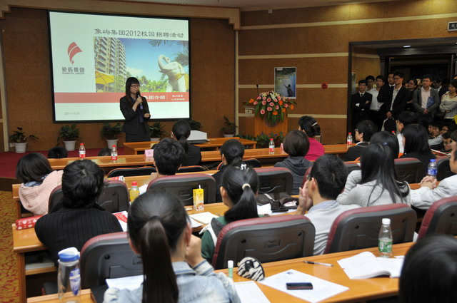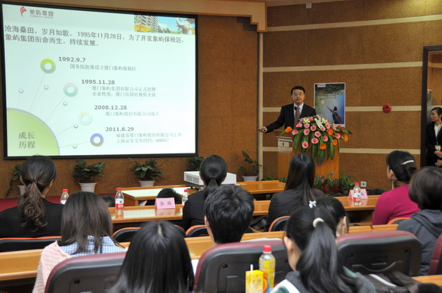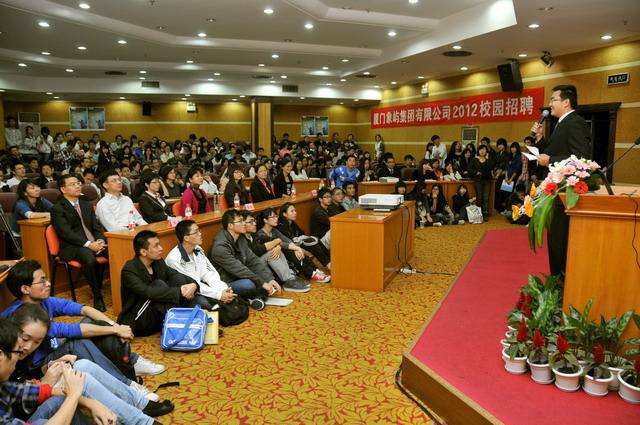 2012年象嶼集團(tuán)全國(guó)校園招聘首場(chǎng)宣講會(huì)于11月23日晚在廈門大學(xué)拉開帷幕。集團(tuán)人力資源總監(jiān)林志勇、象嶼股份人力資源部經(jīng)理林焱為同學(xué)們進(jìn)行了精彩的宣講并回答了同學(xué)們現(xiàn)場(chǎng)的提問(wèn),鼓勵(lì)廈大的優(yōu)秀學(xué)子們加入到象嶼的大家庭。據(jù)悉,此次宣講會(huì)吸引了近500位應(yīng)屆生參加,場(chǎng)面火爆,提問(wèn)環(huán)節(jié)積極踴躍,會(huì)后現(xiàn)場(chǎng)收到簡(jiǎn)歷近500 份。