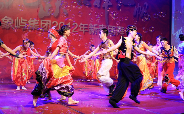 兔樂(lè)豐倉(cāng)送舊年,龍騰喜浪迎新紀(jì)。1月14日晚,年度表彰大會(huì)后,象嶼集團(tuán)2012年新春團(tuán)拜會(huì)在廈門國(guó)際會(huì)展酒店隆重舉行。象嶼集團(tuán)在廈各公司員工、異地公司代表、退休老同志等上千人歡聚一堂,喜迎龍年新春佳節(jié)。王龍雛董事長(zhǎng)率集團(tuán)黨委會(huì)、董事會(huì)、經(jīng)營(yíng)班子成員共同舉杯給全體員工拜年,向全體象嶼同仁、家屬和離退休老同志表示親切的慰問(wèn)和美好的祝愿。對(duì)員工過(guò)去一年的辛勤付出表示衷心感謝和誠(chéng)摯敬意。