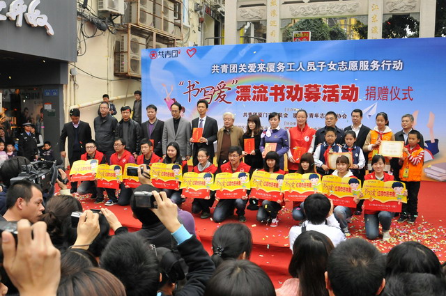 3月4日下午,在中山路步行街的活動現(xiàn)場,集團的志愿者們將整理好的六大箱愛心圖書贈送給了來廈務(wù)工人員子弟學(xué)校,并參加了現(xiàn)場的“書寫愛”漂流書勸募活動,向社會傳遞我們象嶼人的公益和愛心。
