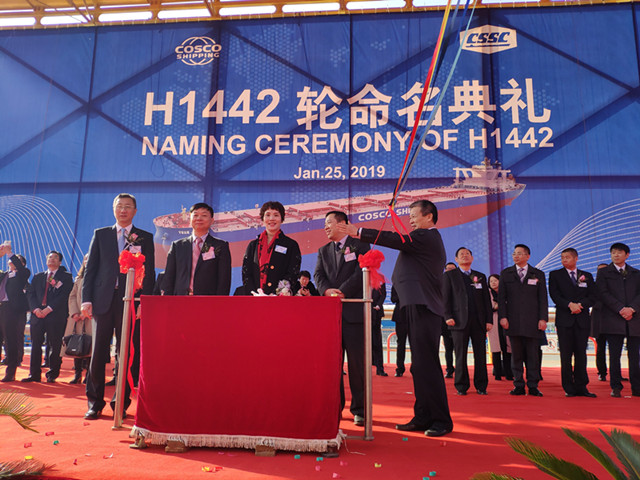 1月25日,揚州中遠海運重工有限公司和外高橋造船有限公司聯(lián)合為中遠海散運建造的40萬噸礦砂船(VLOC)首制船在上海順利命名交付。象嶼股份黨委委員、象嶼股份副總經(jīng)理肖靜勤代表廈門象嶼股份有限公司參加了命名交船儀式,擔任新船教母,為新船命名“遠津海”并剪彩。