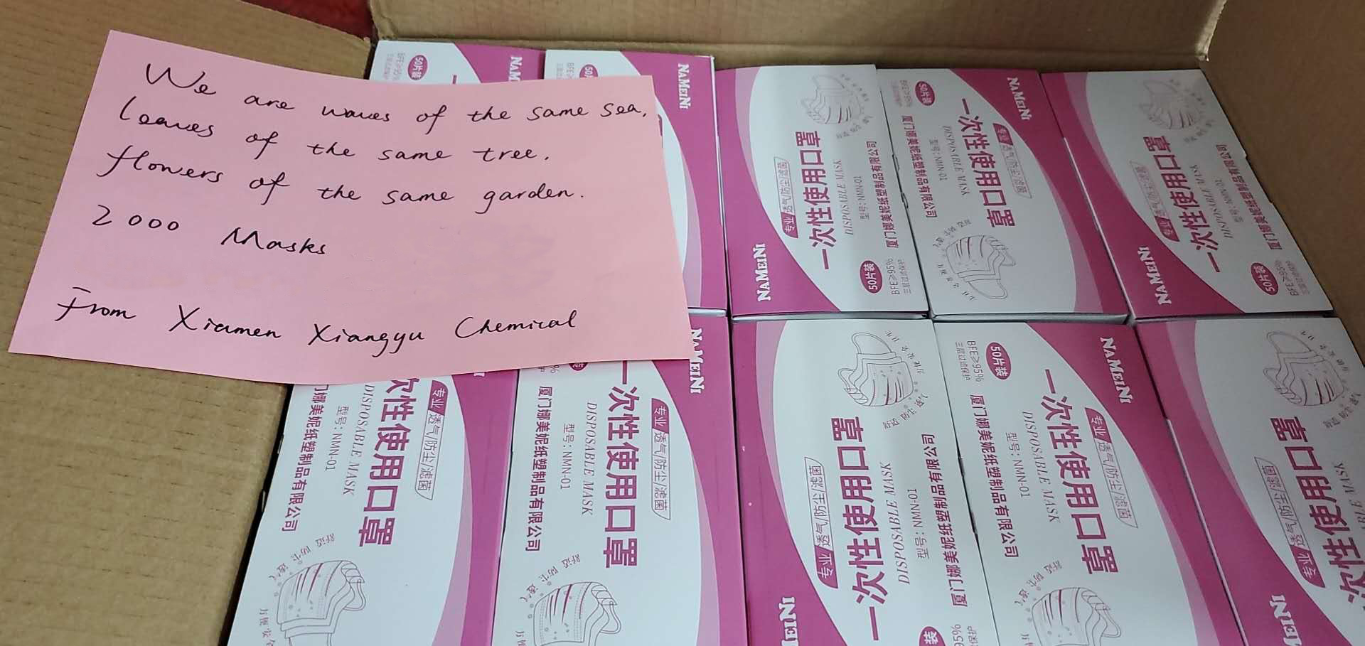 相似的故事同樣也發(fā)生在了象嶼股份旗下企業(yè)象嶼農(nóng)產(chǎn)品公司。打開記憶盒匣,貼著“智利BLUMAR關(guān)心您”暖心字樣的口罩躍然眼前,那是象嶼農(nóng)產(chǎn)品的長期合作伙伴BLUMAR SA公司在智利國內(nèi)口罩存貨不多、購買困難的情況下用心為我司籌措得來的。隨著智利全國進入災難緊急狀態(tài),智利疫情形勢逐步嚴峻。滴水之恩,當涌泉相報。在了解到智利老伙伴的處境后,象嶼農(nóng)產(chǎn)品在象嶼勝獅的協(xié)助下,兩個半小時就完成了10000個口罩的檢驗與裝箱工作,于4月10日迅速寄往智利。象嶼化工也早在3月便積極籌措防疫物資,向秘魯和法國友商寄出2500個口罩。