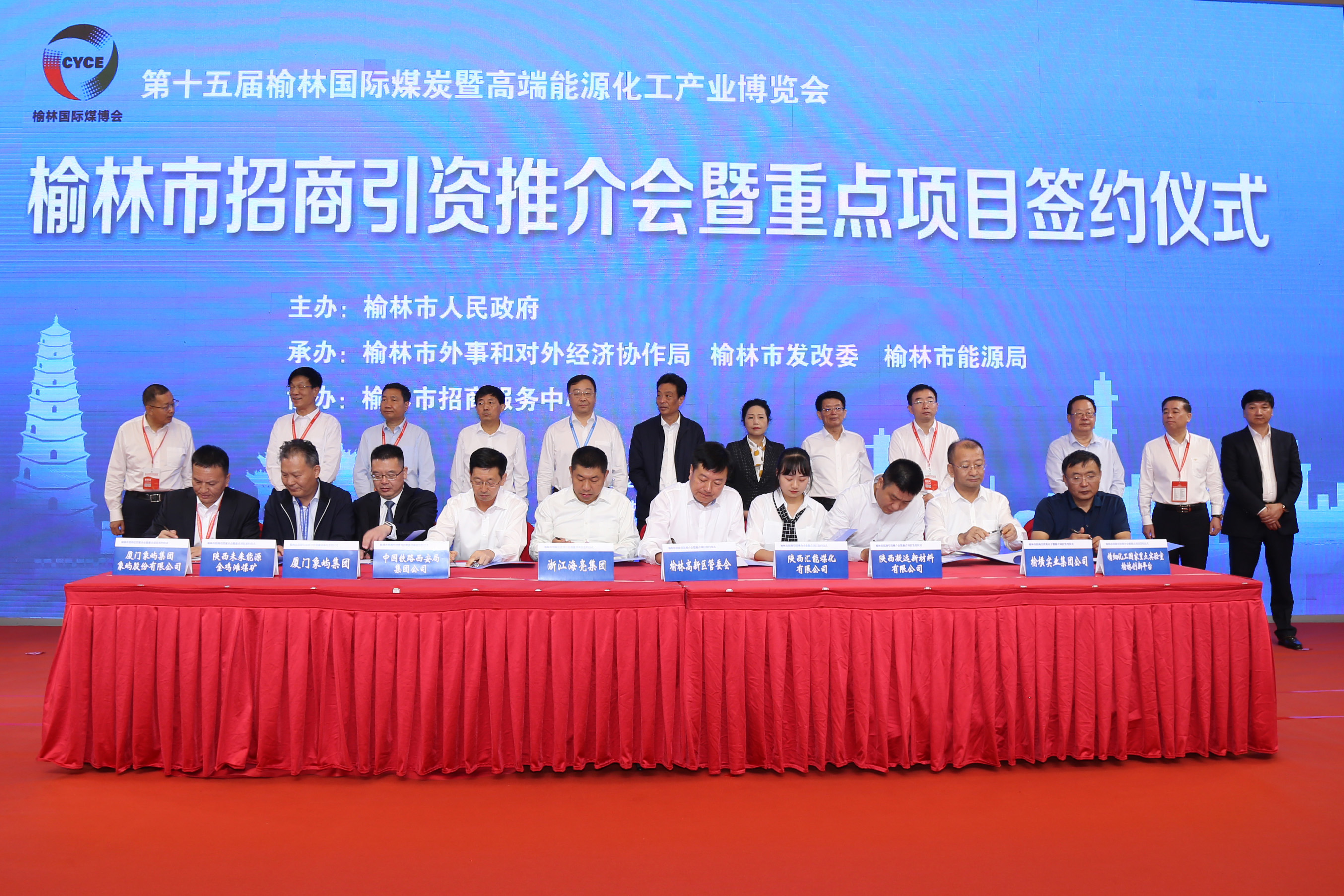 9月10日,第十五屆榆林國際煤炭暨高端能源化工產(chǎn)業(yè)博覽會上,榆林市舉行招商引資推介會暨重點項目簽約儀式。象嶼集團與中國鐵路西安局集團有限公司、陜西未來能源化工有限公司簽訂戰(zhàn)略合作協(xié)議,攜手搭建“公轉(zhuǎn)鐵”綠色運輸大通道,促進榆林煤炭資源的有效釋放與利用。