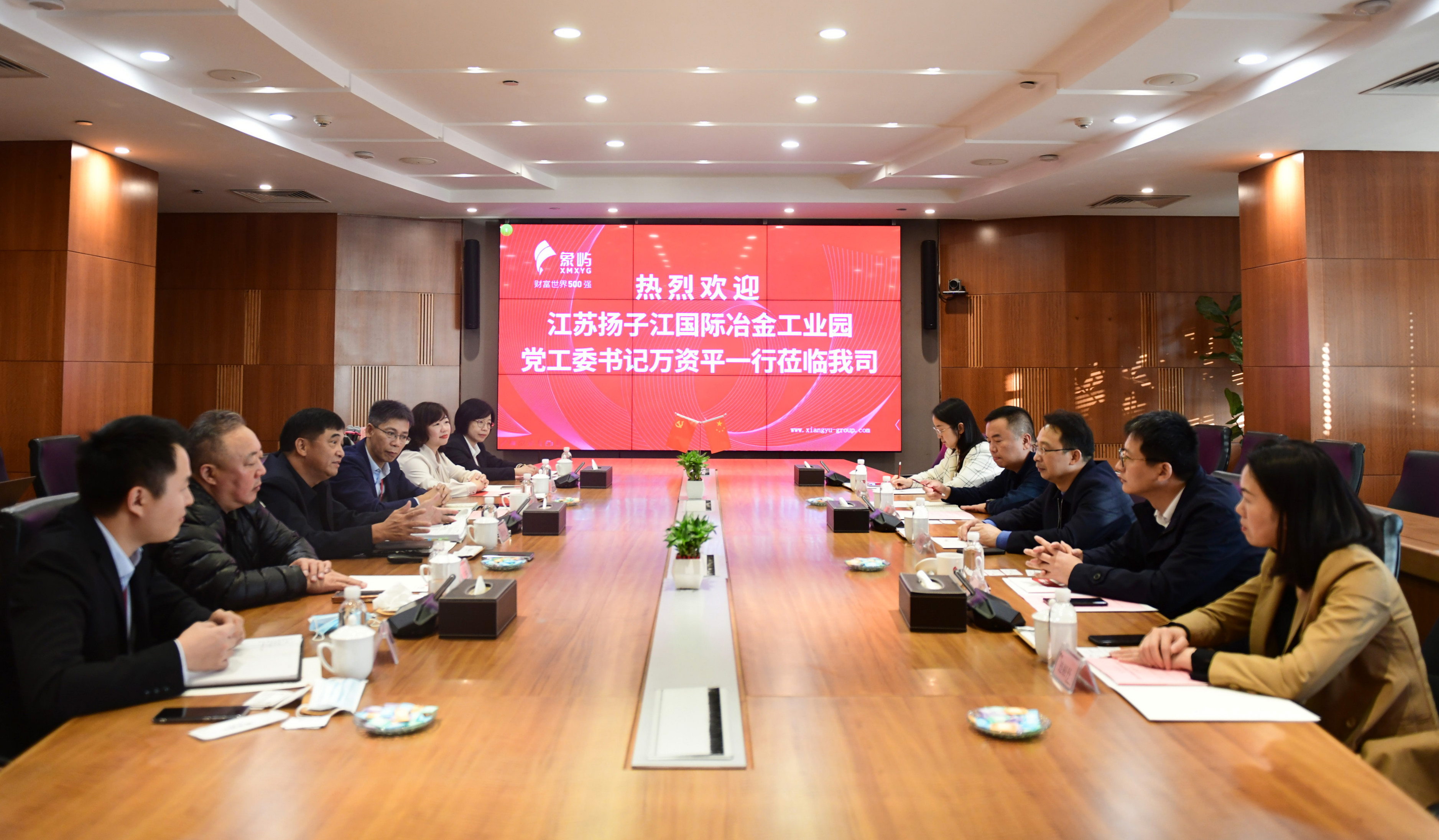 江蘇揚(yáng)子江國(guó)際冶金工業(yè)園黨工委書記萬(wàn)資平一行到訪象嶼集團(tuán)