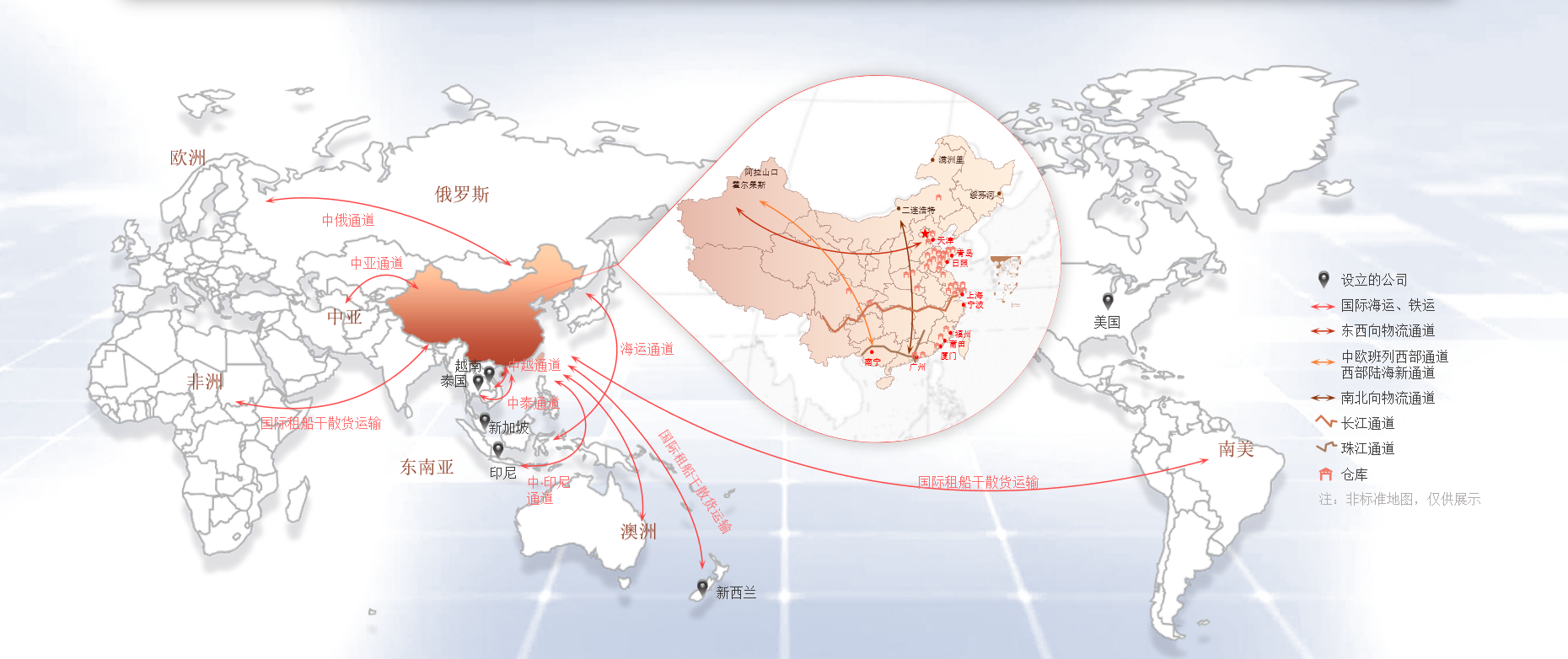 象嶼股份率先構(gòu)建了以“公、鐵、水、倉”為支撐,覆蓋全國、連接海外的網(wǎng)絡(luò)化物流服務(wù)體系,并以“鐵、水”做干線、公路做兩端的經(jīng)營思路,為客戶提供定制化多式聯(lián)運(yùn)解決方案,實(shí)現(xiàn)一站式門到門運(yùn)輸。目前,公司已經(jīng)打造出“北糧南運(yùn)”“鋁產(chǎn)品跨省流通”“北煤南運(yùn)”等多條多式聯(lián)運(yùn)物流線路。