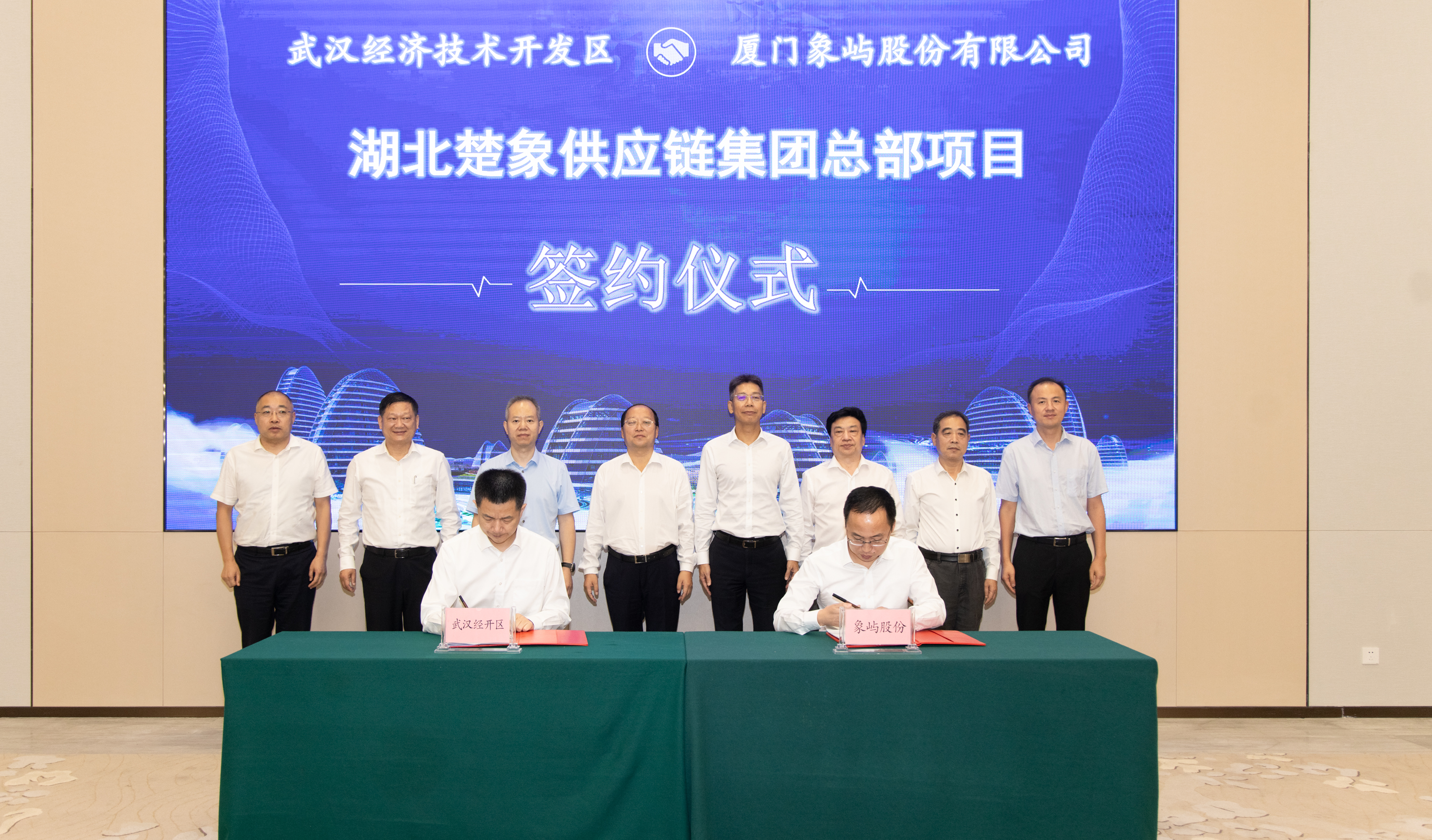 9月28日下午,廈門(mén)象嶼股份有限公司與武漢經(jīng)濟(jì)技術(shù)開(kāi)發(fā)區(qū)簽署項(xiàng)目合作協(xié)議,湖北楚象供應(yīng)鏈集團(tuán)總部項(xiàng)目正式落戶(hù)武漢經(jīng)開(kāi)區(qū)。在象嶼股份黨委書(shū)記、總經(jīng)理齊衛(wèi)東,市委常委、武漢經(jīng)開(kāi)區(qū)工委書(shū)記劉子清,湖北交通投資集團(tuán)有限公司黨委書(shū)記、董事長(zhǎng)龍傳華,黨委副書(shū)記、總經(jīng)理盧軍等共同見(jiàn)證下,象嶼股份黨委委員、副總經(jīng)理范承揚(yáng)與武漢經(jīng)開(kāi)區(qū)工委副書(shū)記、管委會(huì)主任唐超分別代表雙方簽約。