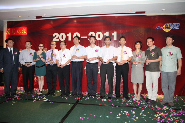 日前,在由廈門晚報和智聯(lián)招聘共同舉辦的“2010—2011廈門年度最佳雇主調(diào)查”活動中,象嶼股份從100多家受調(diào)查企業(yè)中脫穎而出,榮獲“最佳雇主”獎項。9月26日下午,象嶼股份副總經(jīng)理齊衛(wèi)東應邀出席了頒獎儀式。